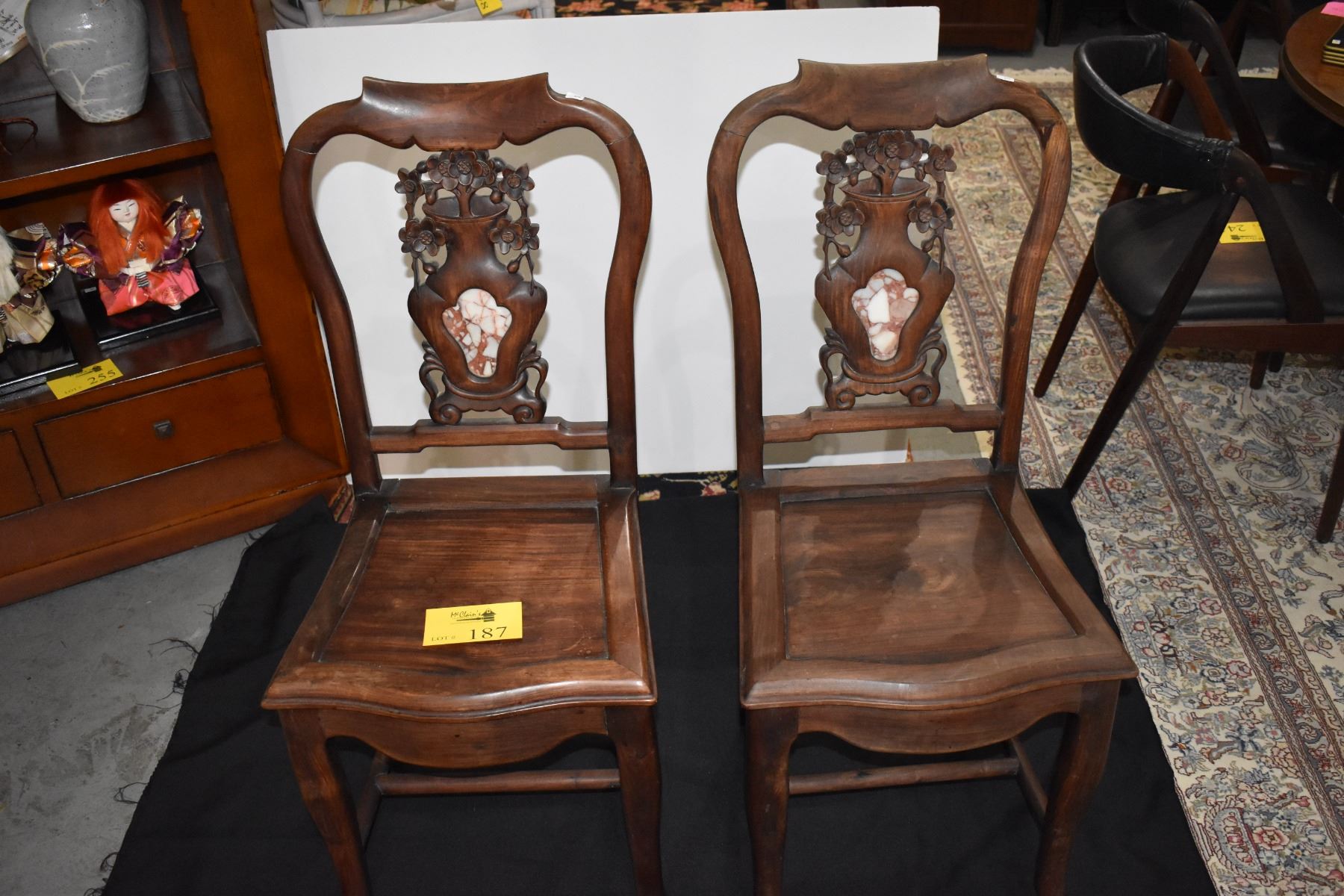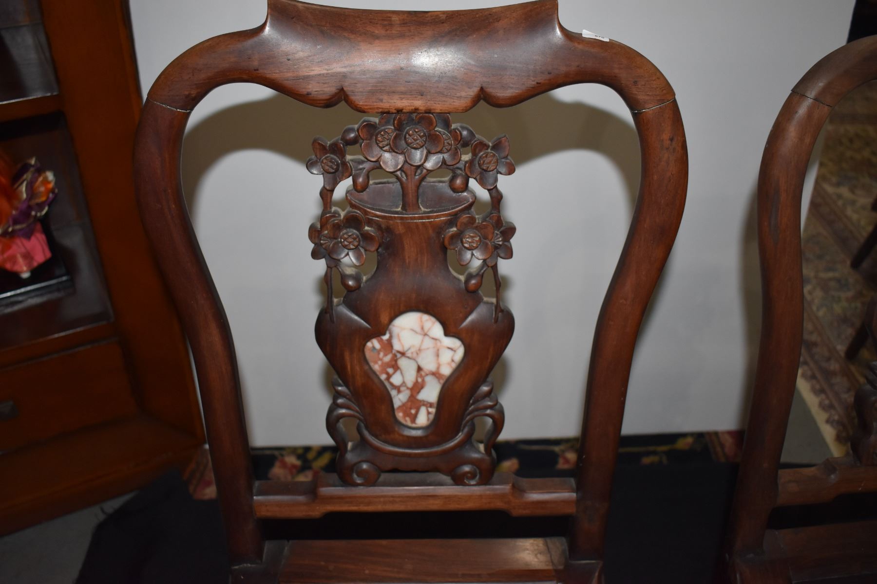 CHINESE BLACKWOOD CHAIRS W/MARBLE INSERT (PAIR)