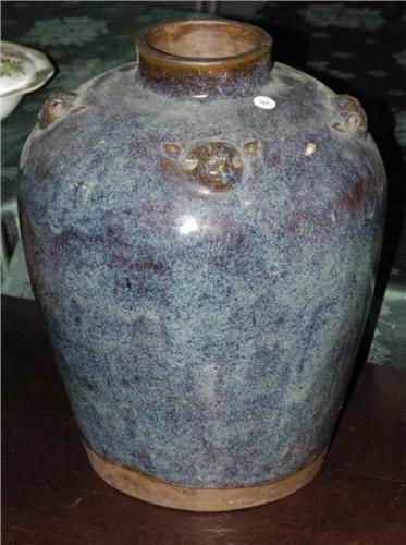 CHINESE BLUE GLAZED POT, 15 1/2" high