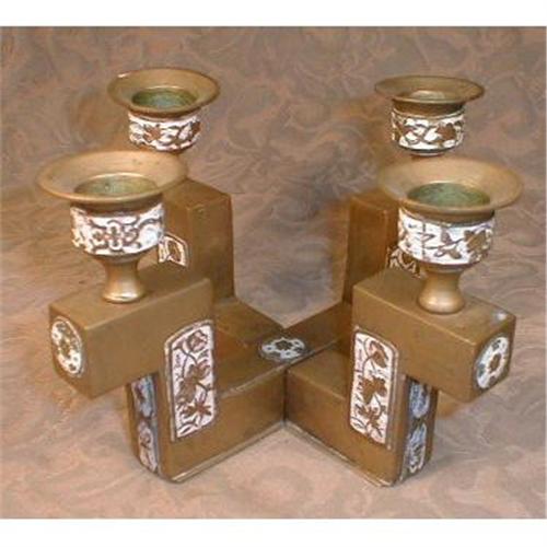 <tr><td>Title:CHINESE Brass CANDLE Holders ENAMEL Decoration</td></tr>