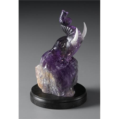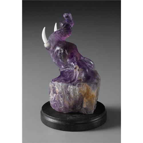 <B>CHINESE CARVED AMETHYST FIGURE</B></I><BR><BR>Chinese carved amethyst figure of an elephant, with composite tusks. On a wood stand<BR>5.5in. high<BR><BR> <BR><BR><b>Shipping:</b> Miscellaneous Collectibles, Larg (<a target="_blank" href="http://www.heritageauctions.com/common/shipping.php">view shipping information</a>)