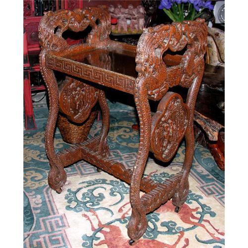 A HIGHLY UNUSUAL AND ATTRACTIVE HAND-CARVED WOOD CHINESE DRAGON SERVING TABLE</em></td>