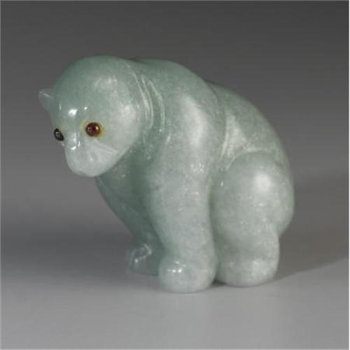 <B>CHINESE JADE/HARDSTONE BEAR</B></I><BR><BR>Chinese carved jade/hardstone figure of a seated bear, with bead eyes. Of green coloration<BR>2-1/2in. high<BR><BR> <B>Condition Report:</B> Normal signs of wear as appropriate with age.<BR><BR><b>Shipping:</b> Miscellaneous Collectibles, Smal (<a target="_blank" href="http://www.heritageauctions.com/common/shipping.php">view shipping information</a>)