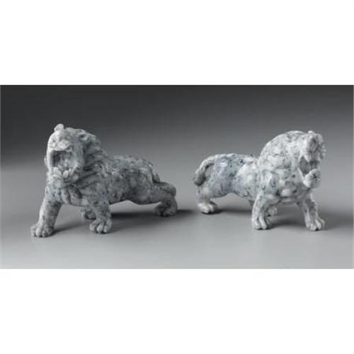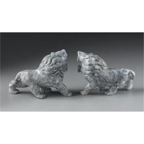 <B>CHINESE CARVED JADE/HARDSTONE LIONS</B></I><BR><BR>Pair of Chinese carved jade/hardstone figures of lions, each in mid-stride, with mouths agape and flowing manes<BR>Each 7in. long<BR><BR> <B>Condition Report:</B> Small losses to front teeth.<BR><BR><b>Shipping:</b> Miscellaneous Collectibles, Larg (<a target="_blank" href="http://www.heritageauctions.com/common/shipping.php">view shipping information</a>)