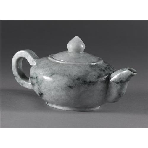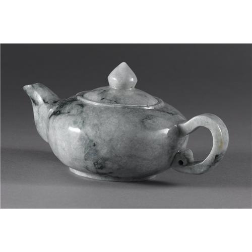 <B>CHINESE CARVED JADE/HARDSTONE TEAPOT</B></I><BR><BR>Chinese carved jade/hardstone teapot. Of mottled green and grey coloration with dark green suffusions<BR>3in. high x 6-1/4in. long<BR><BR> <BR><BR><b>Shipping:</b> Miscellaneous Collectibles, Larg (<a target="_blank" href="http://www.heritageauctions.com/common/shipping.php">view shipping information</a>)