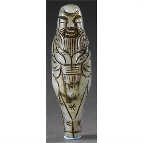 <B>CHINESE CARVED JADE/HARDSTONE TOGGLE</B></I><BR><BR>Chinese carved jade/hardstone toggle, in the form of a man. Of pale green and grey coloration<BR>2-3/4in. long<BR><BR> <B>Condition Report:</B> Normal signs of wear as appropriate with age.<BR><BR><b>Shipping:</b> Miscellaneous Collectibles, Larg (<a target="_blank" href="http://www.heritageauctions.com/common/shipping.php">view shipping information</a>)