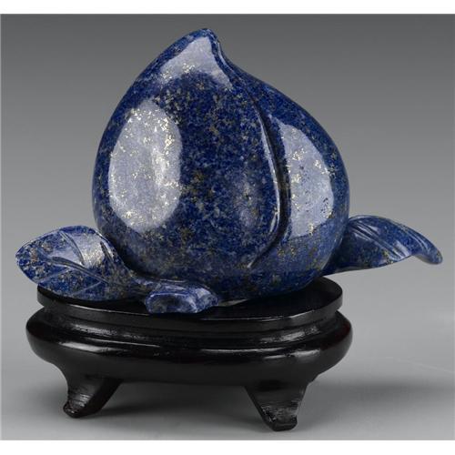 <B>CHINESE LAPIS LAZULI PEACH</B></I><BR><BR>Chinese carved lapis lazuli peach. On a wood stand<BR>3-1/4in. high<BR><BR> <B>Condition Report:</B> Normal signs of wear as appropriate with age.<BR><BR><b>Shipping:</b> Hollowware/Pottery/Glass, Small (<a target="_blank" href="http://www.heritageauctions.com/common/shipping.php">view shipping information</a>)