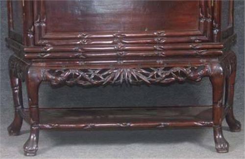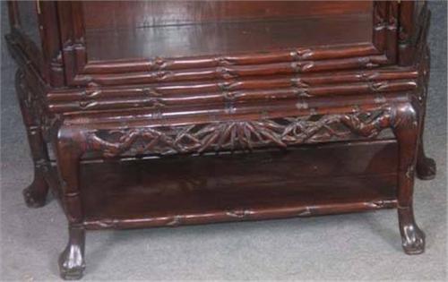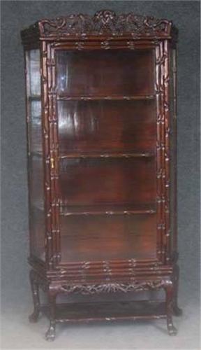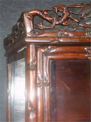CHINESE CARVED ROSEWOOD CURIO CABINET, early 20th century height:76", width: 38" depth: 15 1/2" note: doors open on all sides