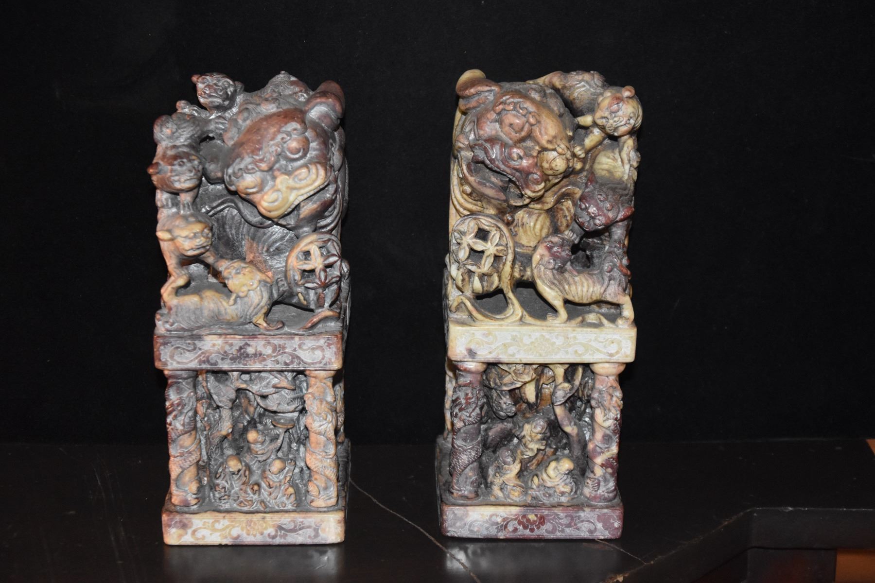 CHINESE CARVED STONE CHOPS (9") (2 PCS)