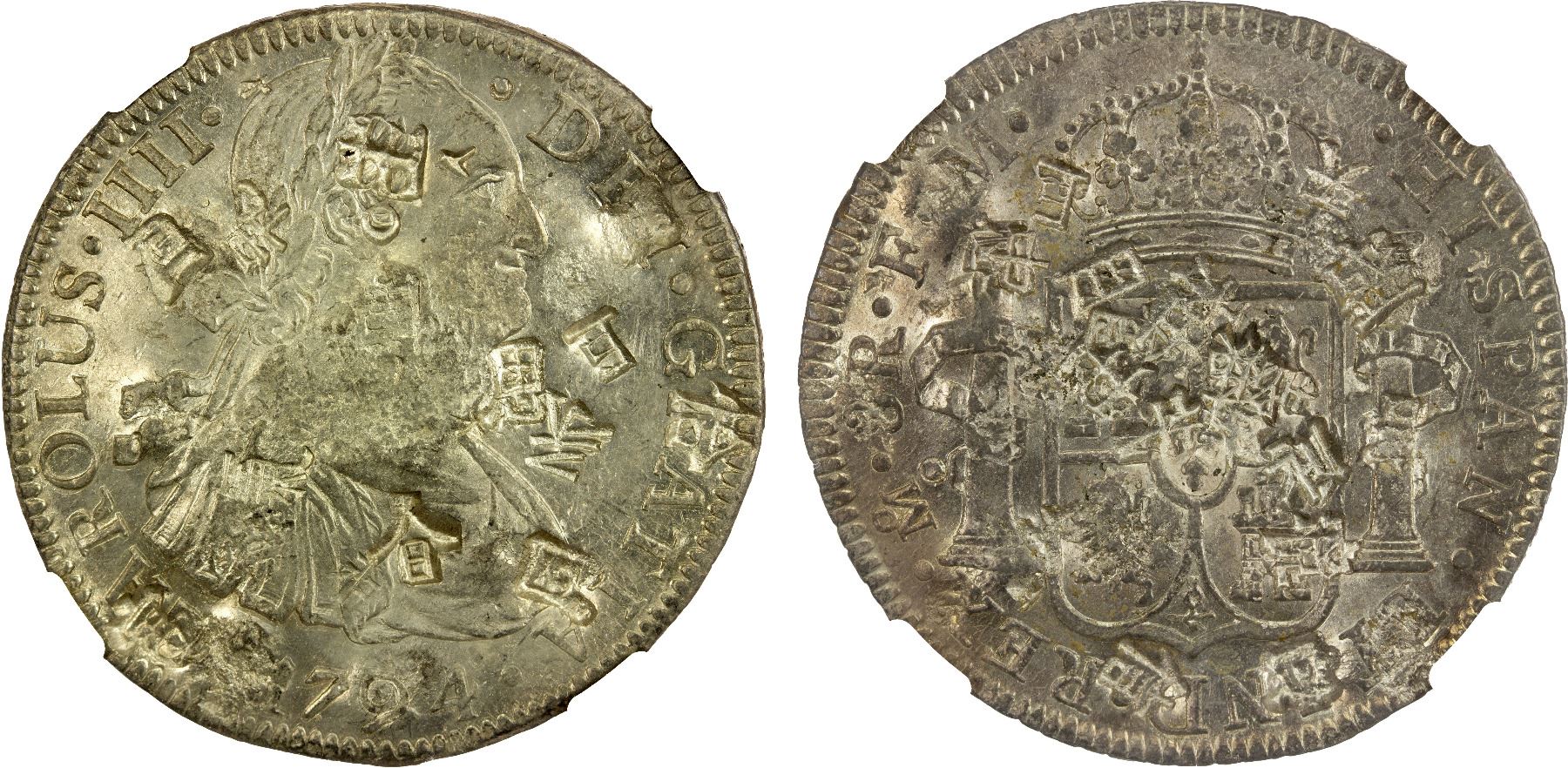 CHINESE CHOPMARKS: MEXICO: Carlos IIII, 1788-1808, AR 8 reales, 1794-Mo, NGC VG details