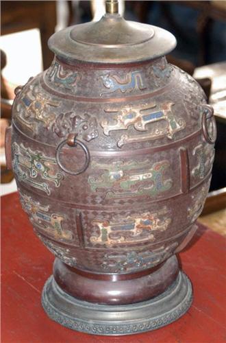 CHINESE CLOISSONE VASE adapted to a lamp, 13" high excluding fittings, 19th century, condition: excellent, PACKING AND SHIPPING (excluding insurance) $40,