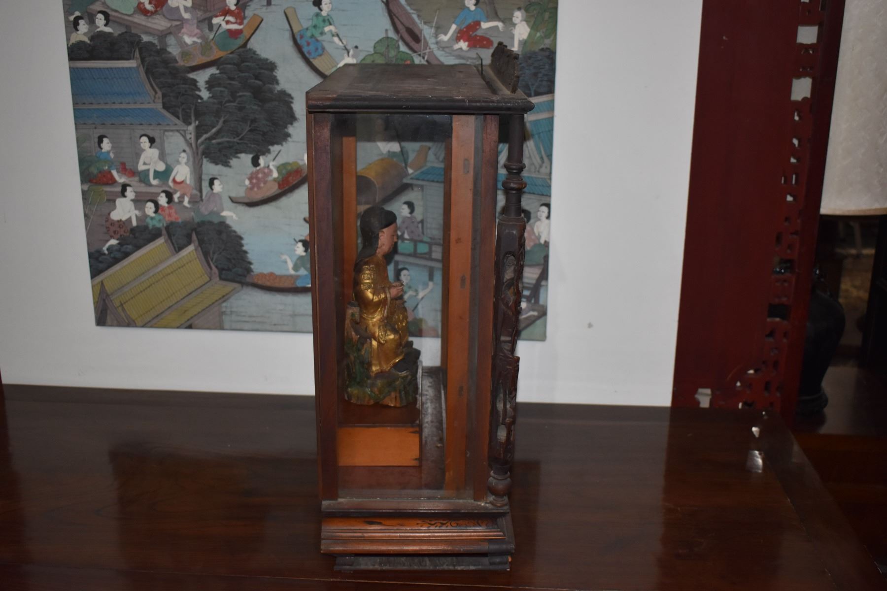 CHINESE ELABORATELY CARVED VINTAGE ALTER BOX & CHINESE DEITY (ALTER BOX 24.5" X 19" X 9.5")