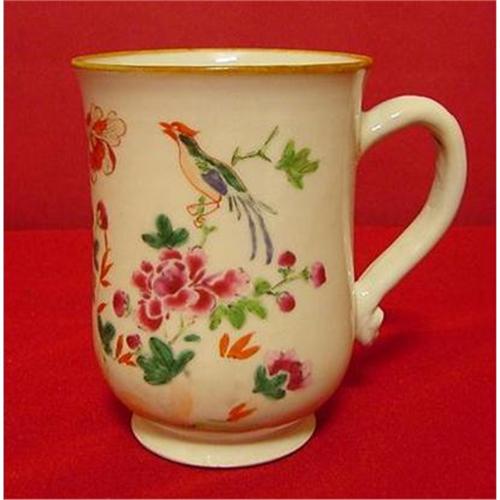We have just purchased a Large Collection Of 18TH Century Chinese Export Mugs. This one is a 18TH Century Famille Rose Bell Shaped Mug/Tankard. Good Condition with minor restoration. It measures 5" in height and 3 1/2" in diameter at the top opening.