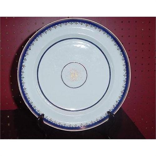 Circa 1800 Chinese Export. A pair of Armorial Plates 9 3/4' in diameter.Very typical of plates made for the American Market. For some reason one has a initial and the other doesn't. The monogram initial on the one plate is DC. We also have a pair of platters with the same monogrammed initial that came out of the same New England Estate.