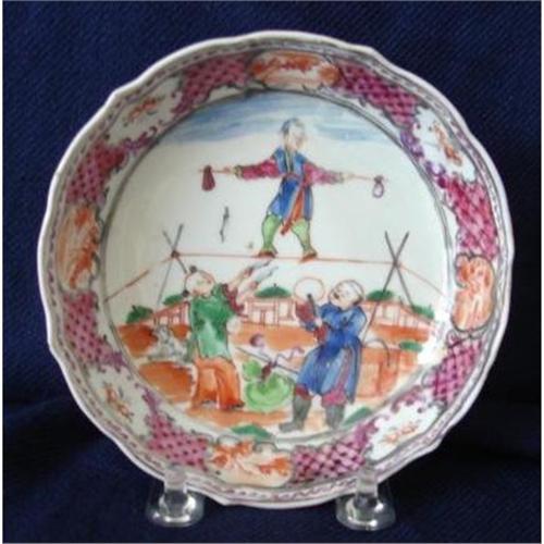 </font></strong>C. 1775 Chinese Export Famille Rose Acrobatic Mandarin Cup and Saucer, of most unusual subject matter in Good Condition. RARE and SCARCE!! I have Never Seen This Pattern or Subject Matter!!!