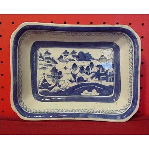 Circa 1840 Chinese Export Blue Canton Rare Silver Tray. Many in the form of silver tray and in many sizes. They are always in great demand for their functional use. This one measures 9" X 6 1/2" AND IS 2" IN DEPTH. Good Condition.