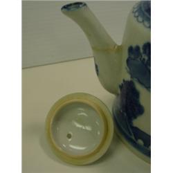 Chinese Export Canton teapot. 5.75" x 5" wide. Condition: Repairs to lid & spout and chip on end of spout. Sold "as is" in fair condition.