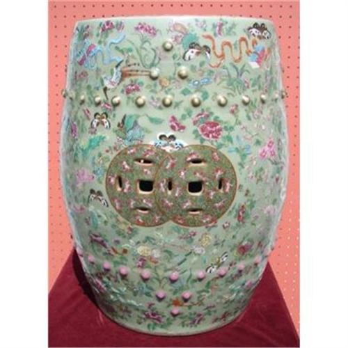 Circa 1840 Chinese Export Celadon Round Shaped Garden Seat. This Rare seat measures 19" in height and the diameter at the top of the seat is 12". The Diameter at the widest point in the middle of this rare piece is 15". Fresh out of a New England Estate, this garden seat is in Very Good Condition and is of Excellent Quality. This is the first old antique celadon garden seat that I can remember owning or even seeing. Additional images are available upon request.