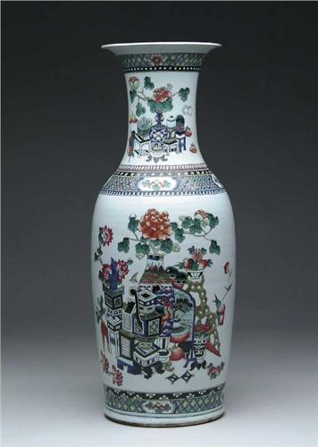 CHINESE EXPORT LARGE VASE. The vase has flaring top and bulbous tapering sides. Enhanced with very intricate and colorful decoration of flowers, birds and trees. Mid 19th Century. SIZE: 24” h. CONDITION: Very good. 9-26656