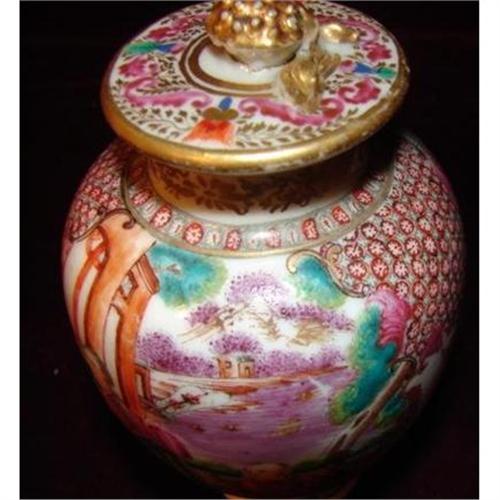 <tr><td>Title:CHINESE EXPORT MANDARIN PALETTE TEA POY W/GOLD</td></tr>