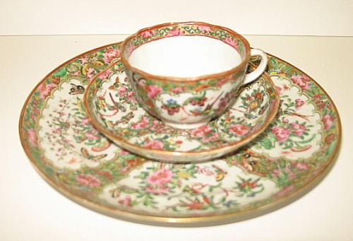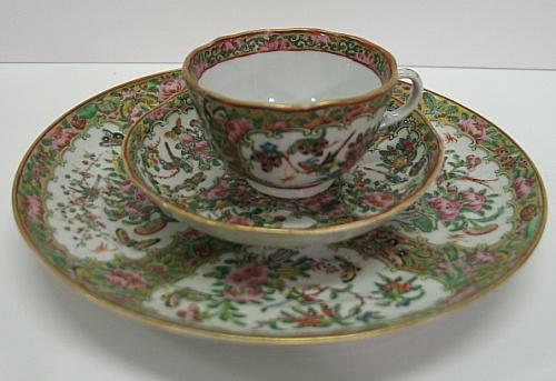 CHINESE EXPORT PORCELAIN FAMILLE ROSE PLATE, SAUCER, and CUP. All have beautifully floral decorated. Plate: 8.5" Dia.