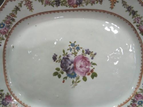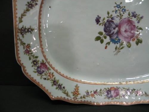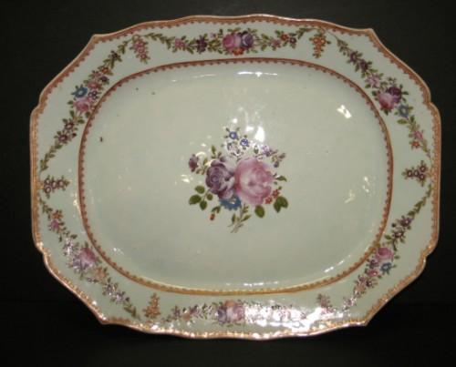 CHINESE EXPORT PORCELAIN CELEDON PLATTER. Floral & gilt decorated. Unmarked. 15” L