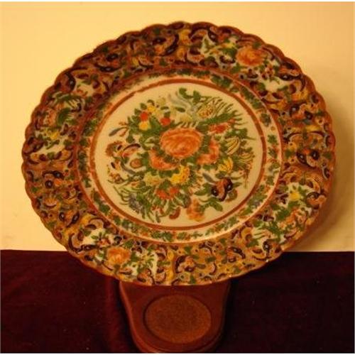 Circa 1890 Chinese Export Rose Canton Rippled Edge plate with 1000 Butterfly Border measuring