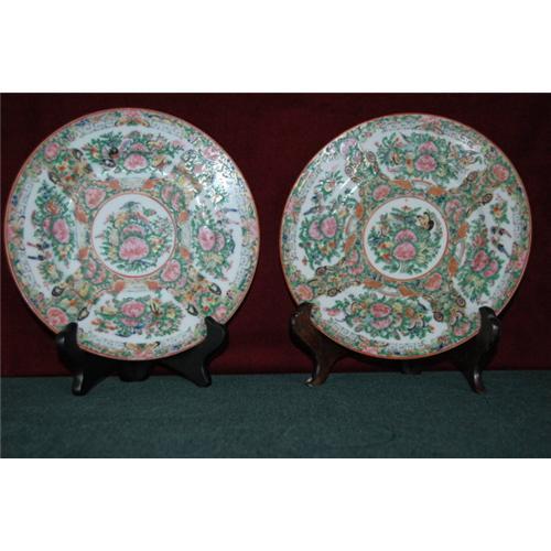 CHINESE EXPORT ROSE MANDARIN SOUP PLATES. Good condition.