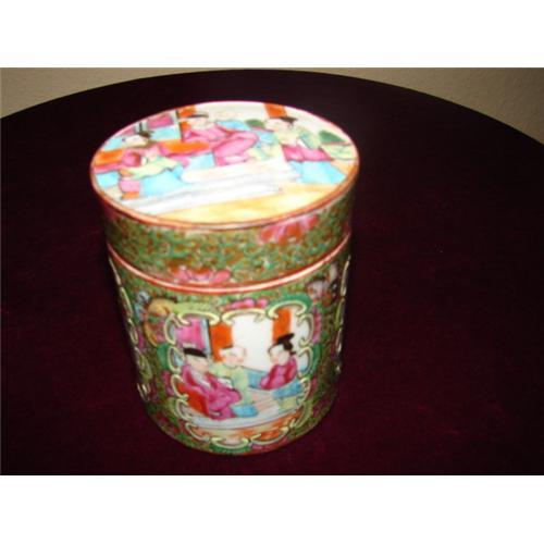 <tr><td>Title:CHINESE EXPORT ROSE MEDALLION DRESSING JAR</td></tr>