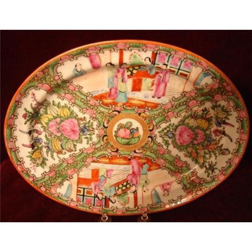 Circa 1920 Chinese Export Famille Rose Medallion/Canton Antique Oval Platter with the Made in CHINA mark. This Platter is 12" X 9 1/2" and is 1" in depth and has the Made in China Mark. The Made in China mark dates is as Circa 1920. Fresh out of a New England Estate. This is one of several listings of different pieces from the Early 20TH Century that are very decorative and are good for decorating and filling up a cabinet, especially if on a budget.