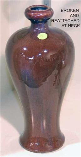 CHINESE FLAMBE POTTERY VASE 18th/19th century <BR>condition: top broken off and repaired at neck