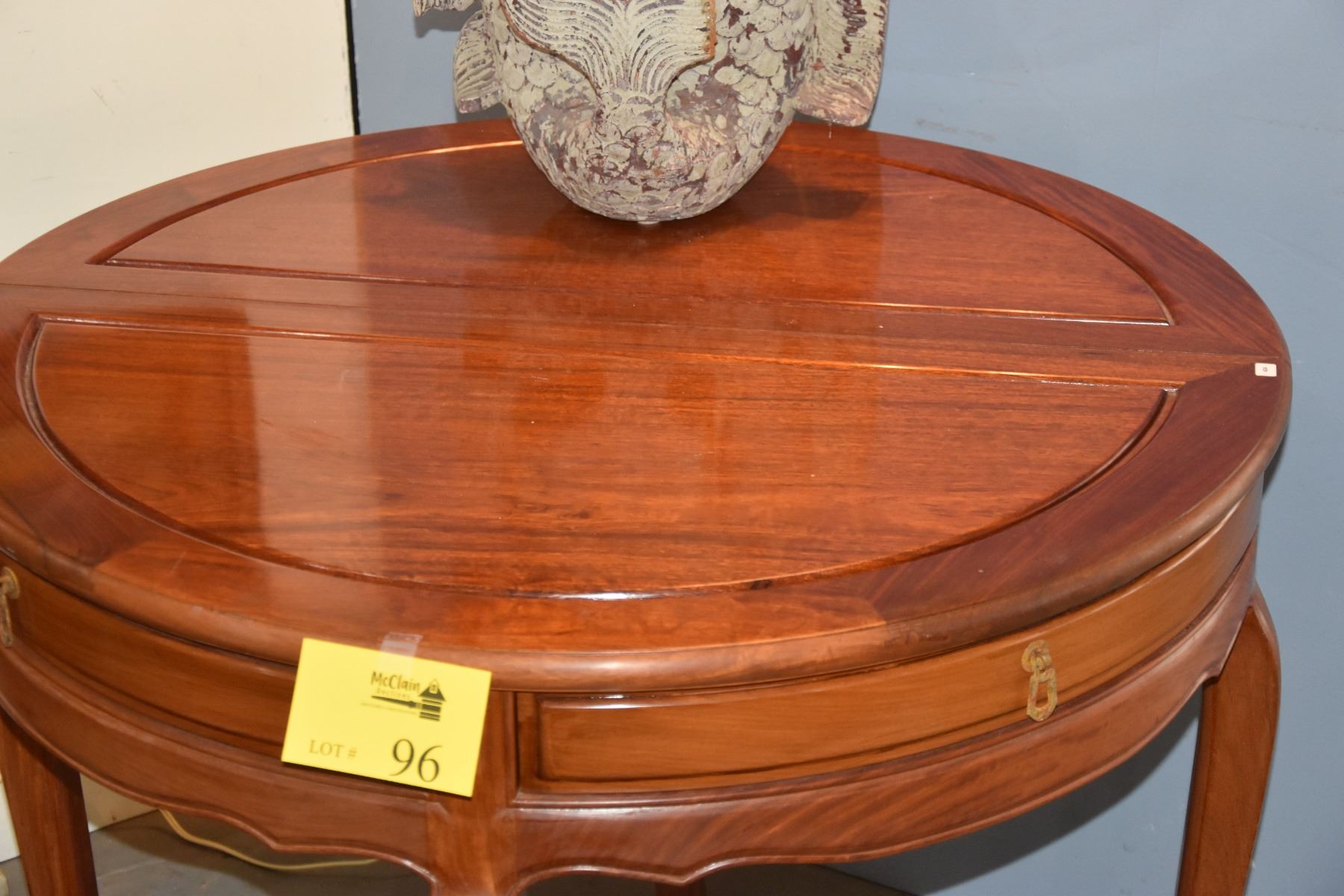 CHINESE FOLD OUT DEMI-LUNE/ROUND ROSEWOOD TABLE W/2 DRAWERS (36")