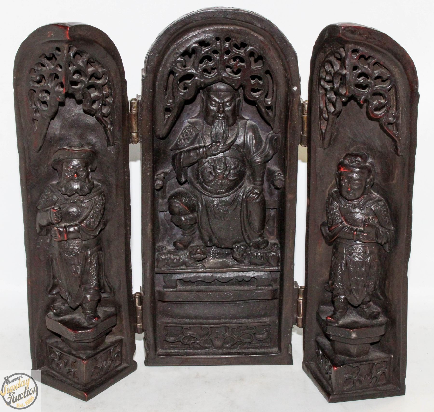 CHINESE FOLDING BUDDHA TRIPTYCH SHRINE 9" TALL
