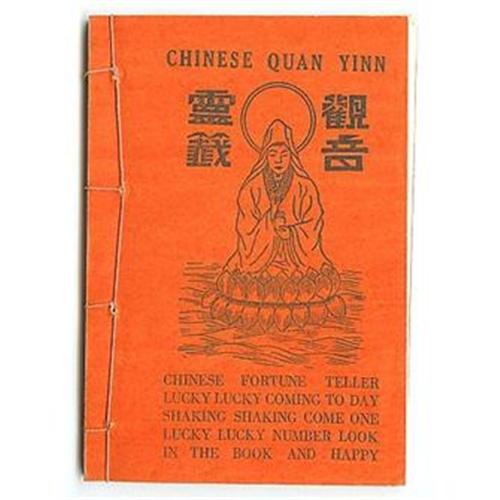Chinese Quan Yinn Fortune Telling Book, stunning circa 1930s edition printed on fine double-page rice paper and with hand sewn binding, measures 5-3/4" x 4", 66 pages. Intended to be used with 65 numbered bamboo sticks (not included).