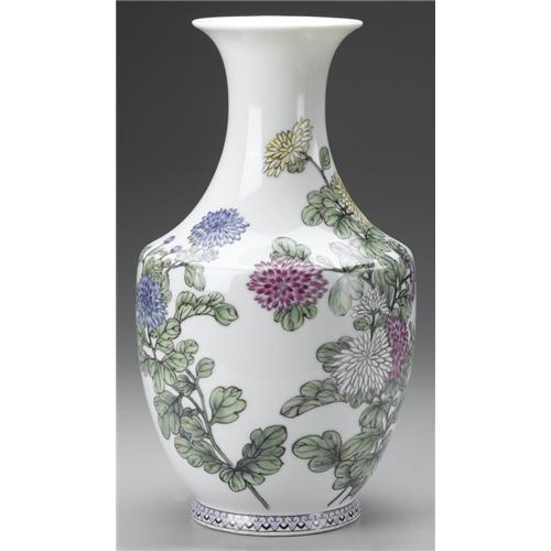 CHINESE GLASS VASE WITH PAINTED CHRYSANTHEMUMS