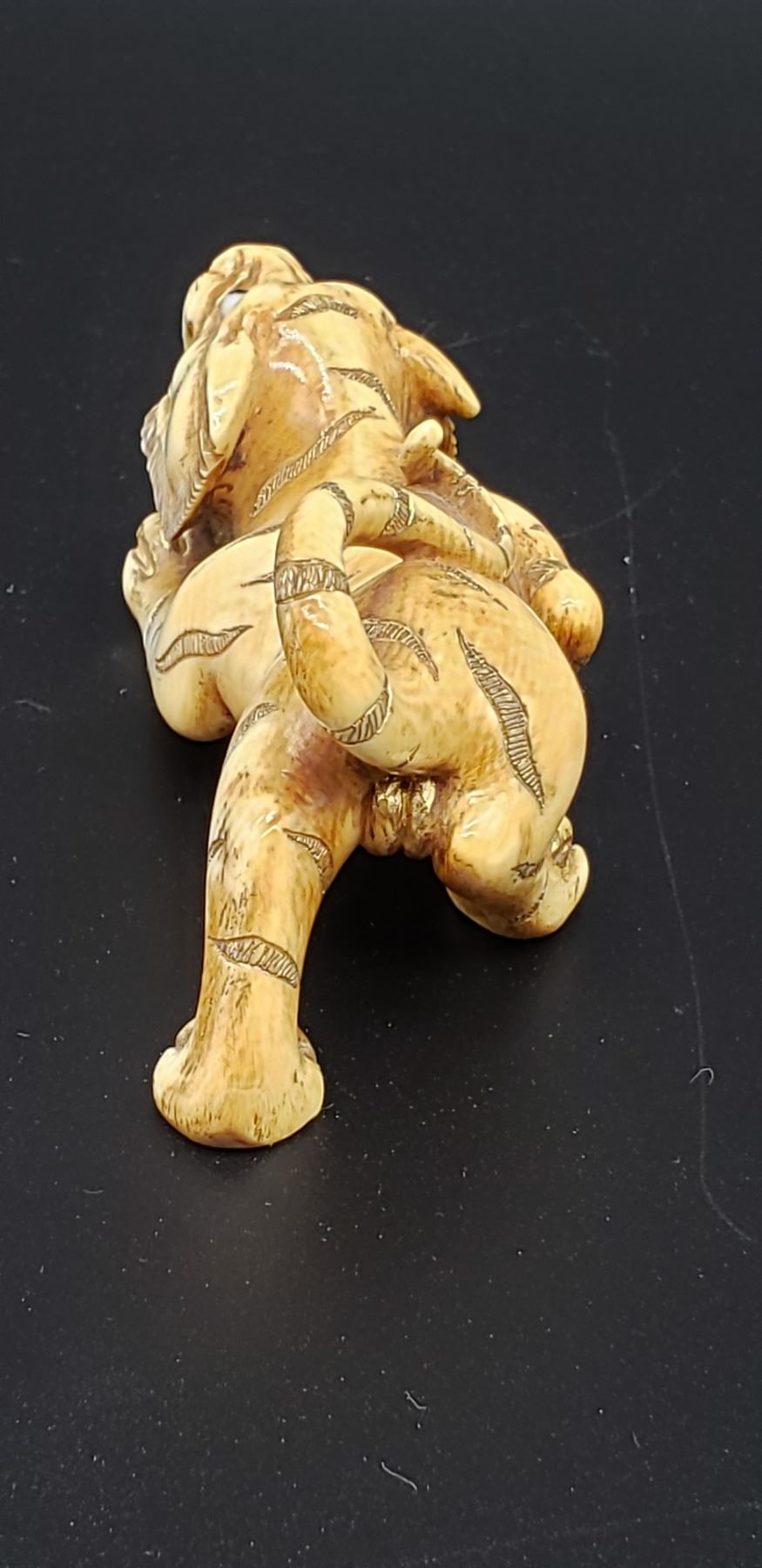 Chinese Hand Carved Netsuke Foo Dog Piece is 3 1/4" x 2" All items Located in in Hollywood Florida Warehouse For Shipping Call today for quote they have item numbers and Pak Mail is available for all your custom packaging and shipping needs. We can package, palletize, crate, insure and ship to any Domestic or International location. All packaging and shipping fees must be paid in full before shipment is released. On international shipments, consignee is responsible for all Duties, Taxes, Customs Clearance or any destination fees that apply. Please visit our website @ www.pakmail.com/us770 for contact information or to get a quote. (Let us know you are a winning bidder from the Puckett auction so we can correctly arrange pick up for your item