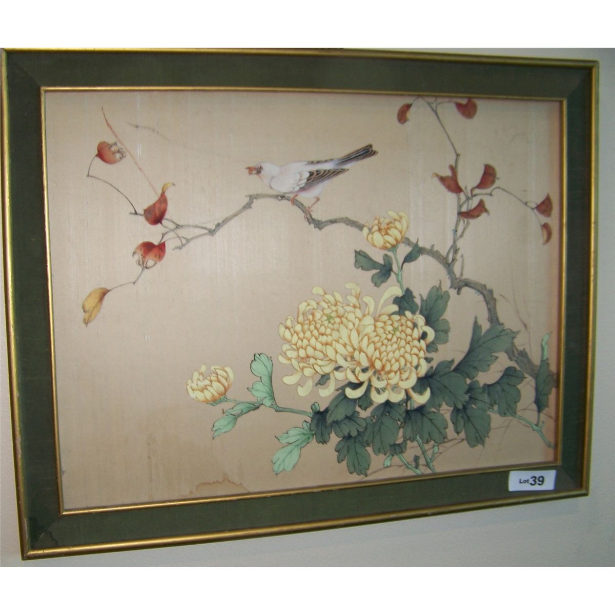 CHINESE HANDPAINTING ON SILK, FRAMED 21T X 28W