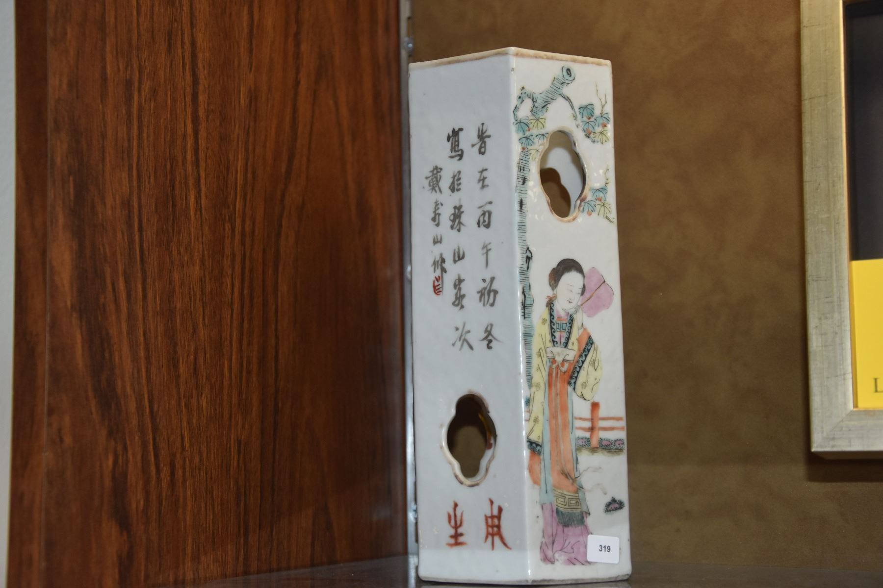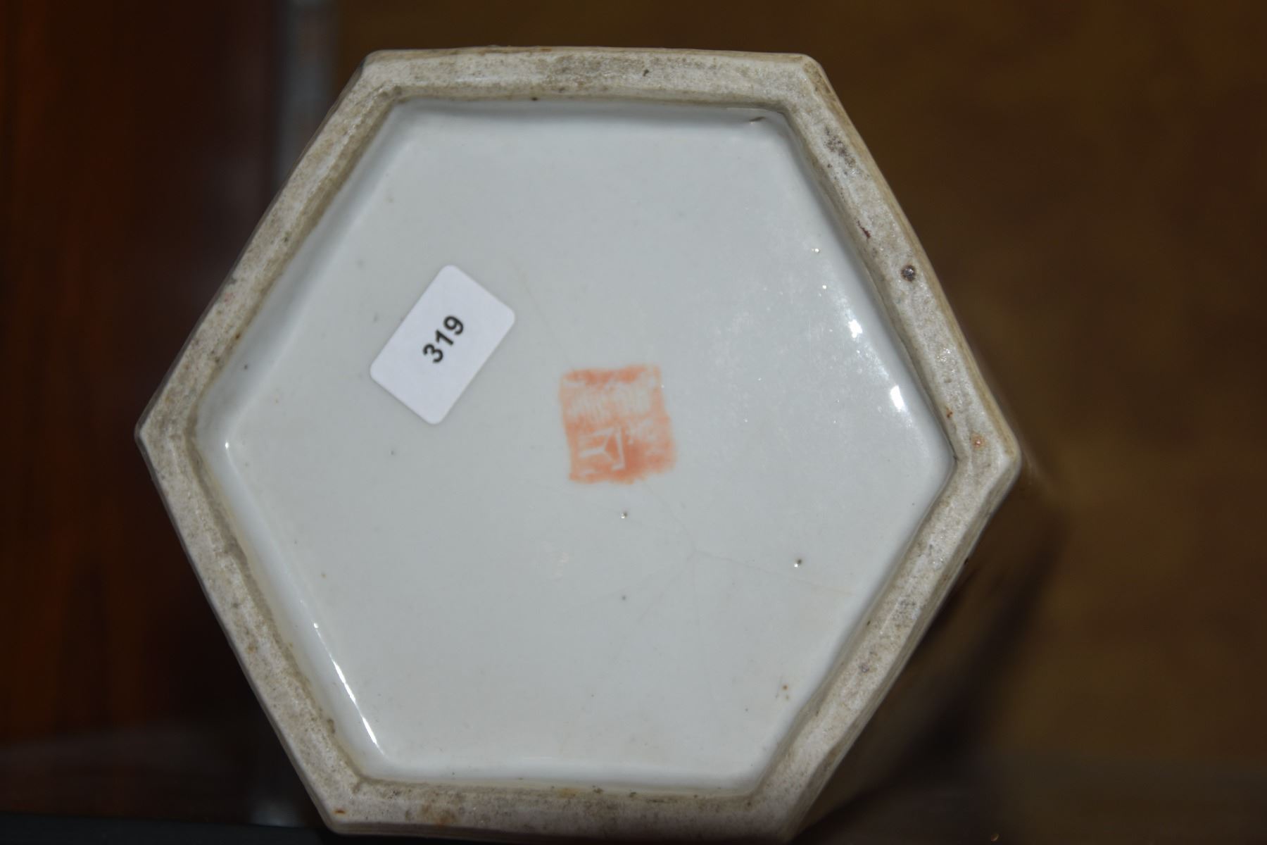 CHINESE HEXAGON POLYCHROME PORCELAIN HAT STAND; SIGNED (10 1/2 )