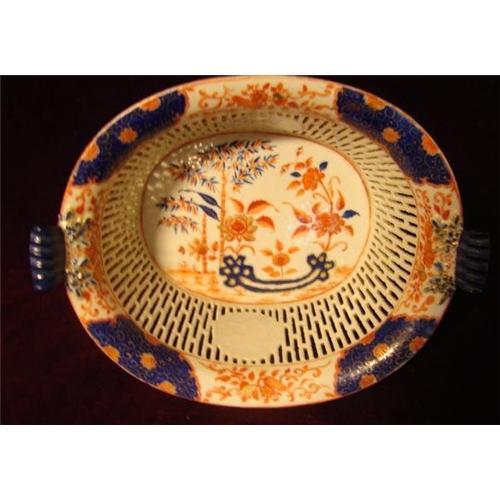 </font></strong> Circa 1740 Chinese Export Chinese Imari Very Rare Reticulated Basket with Original Handles and In Perfect Condition with No Restoration. The Chinese made or actually copied and duplicated the imari pattern for only about 60 years. This is the very first reticulated fruit/chestnut basket that I have seen in 18TH Century Imari in japanese or chinese. This is a fabulous Rare piece. Handles are in tact which is unusual. This piece is of Excellent Quality and found in Pristine Condition. Measures 8 1/2" from handle to handle and 6 1/2" from front to back and is 3" in height to top rim of basket. Wonderful cobalt blue decoration with imari orange fired on a white background, Light blue decoration on inside of basket just below the handles. Additional images are available upon request.</font>
