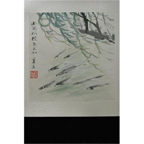 Attributed to Xu Gu ( Chinese 1824-1896 ). Decorate with fish and tree. Good condition. No frame come with. 13.5" x 13.5"