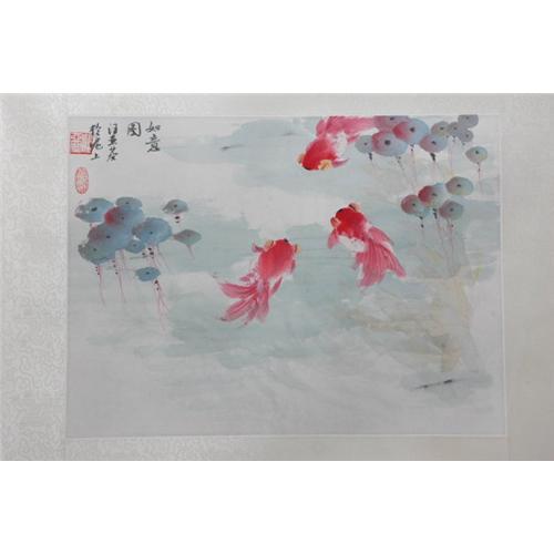 Attributed to Wang Yachen ( Chinese 1894-1983 ). Decorate with fishes. Good condition.no frame come with.18" x 13".