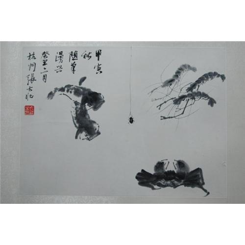 Attributed to Zhang Dazhuang ( Chinese 1903-1980 ).Decorated with crab,shrimp and spider.Good condition. No frame come with. 18" x 13".