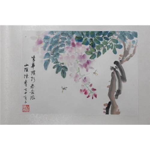 Attributed to Chen Banding ( Chinese 1876-1972 ). Decorate with floral.Good condition. no frame come with. 18" x 13".