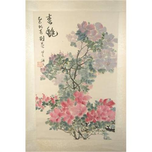 Attributed to Liu Danzhai ( Chinese 1931- ). Decorate with floral.Good condition. 26.75" x 17" painting itself.