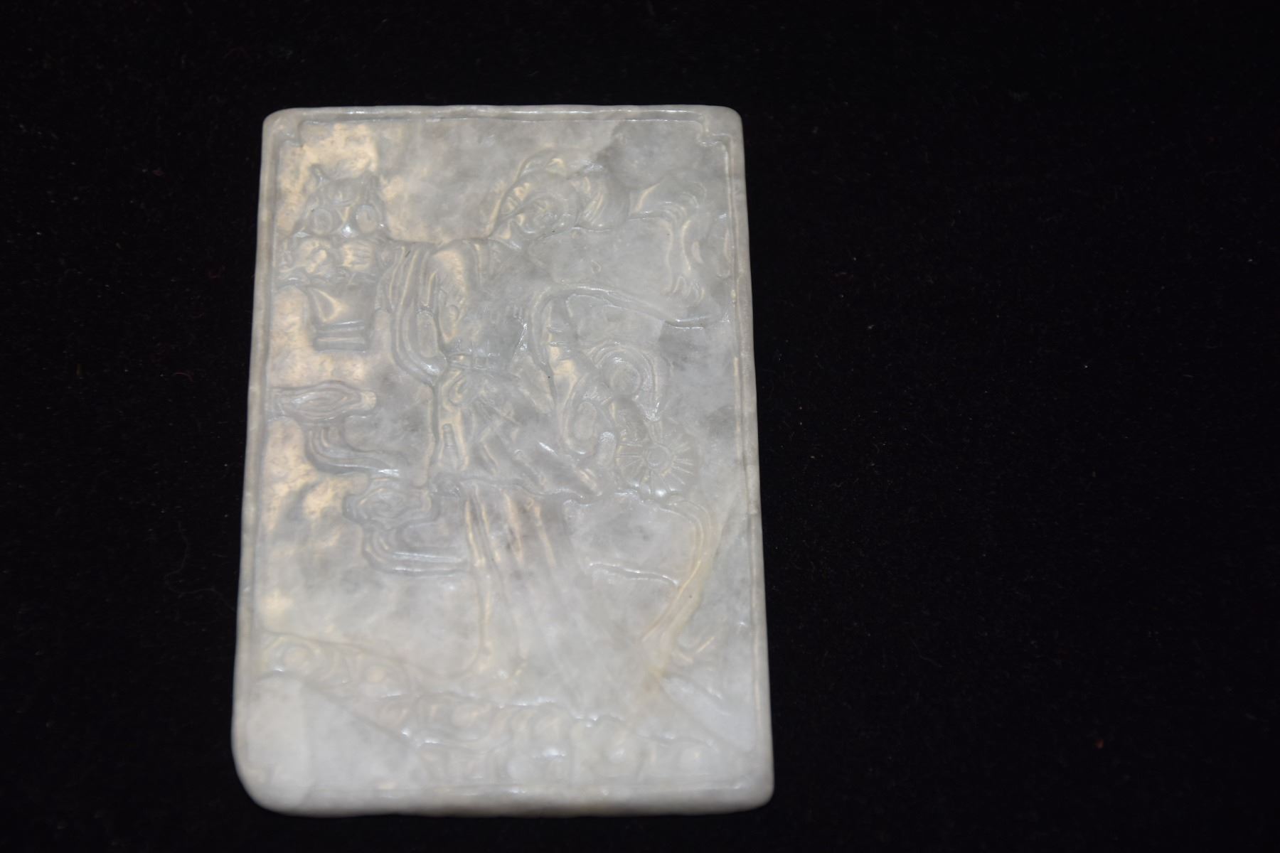 CHINESE JADE CARVED LADY TABLET (3 1/2" X 2 3/8")