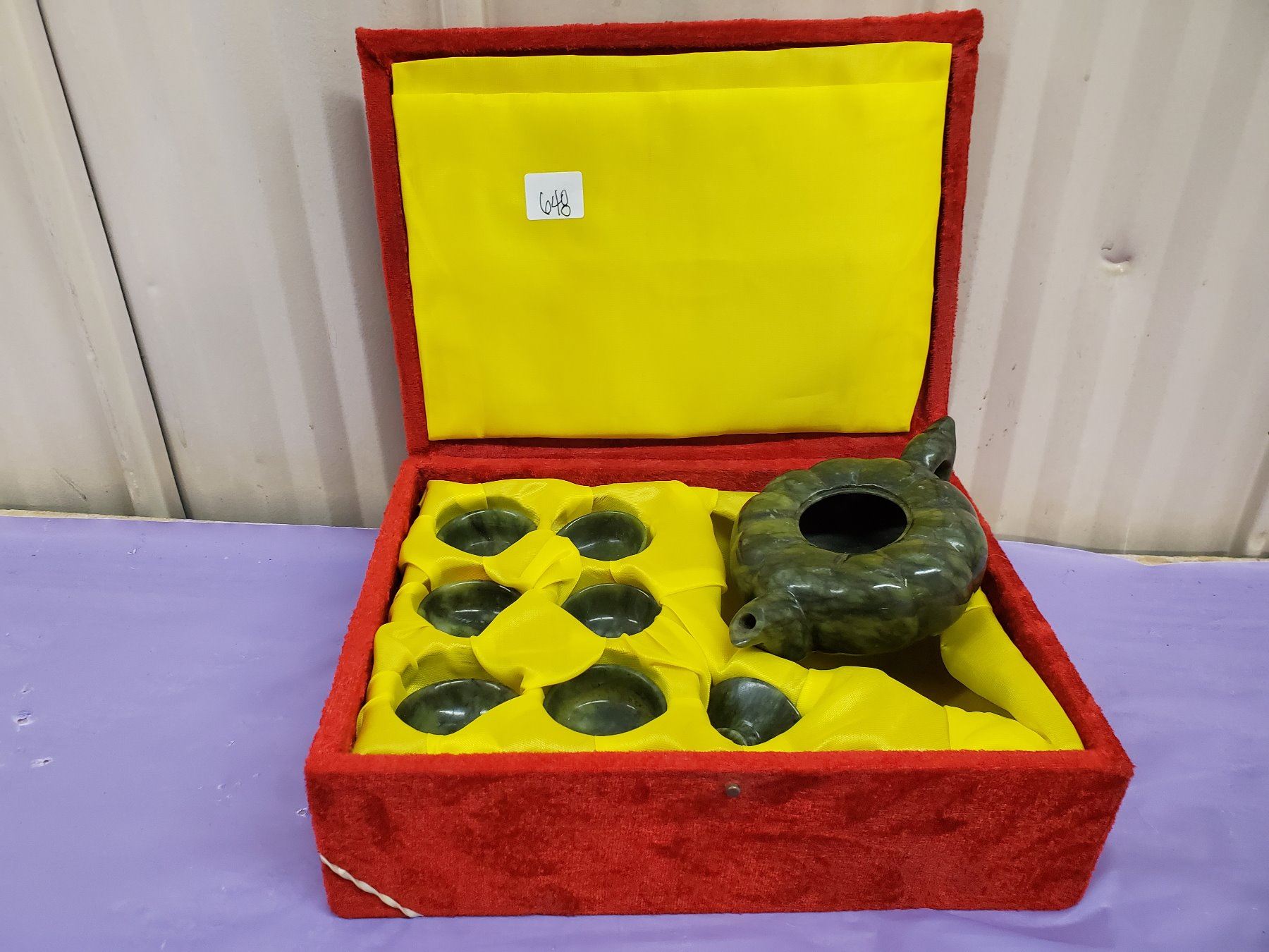 CHINESE JADE TEA POTS WITH CUPS- BOXED