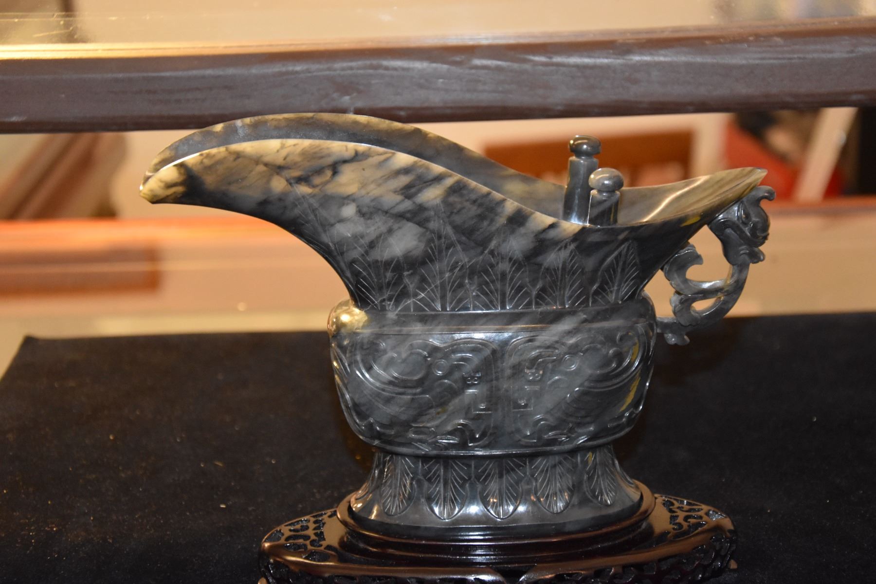 CHINESE JADE WINE VESSEL W/STAND & ORIGINAL BOX