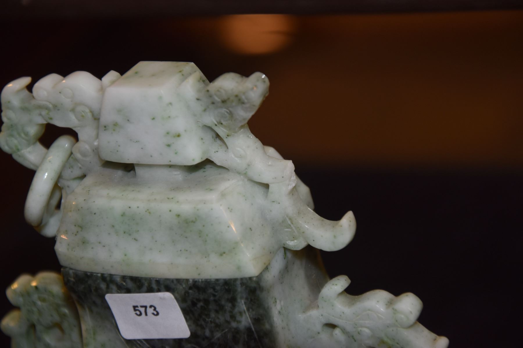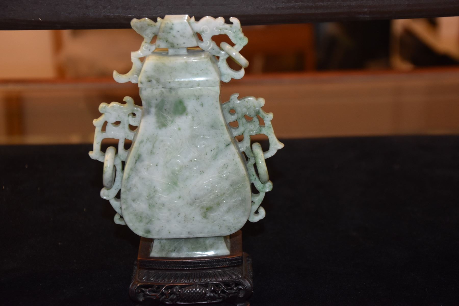 CHINESE JADEITE CARVED VASE W/LID & FINE STAND (8")