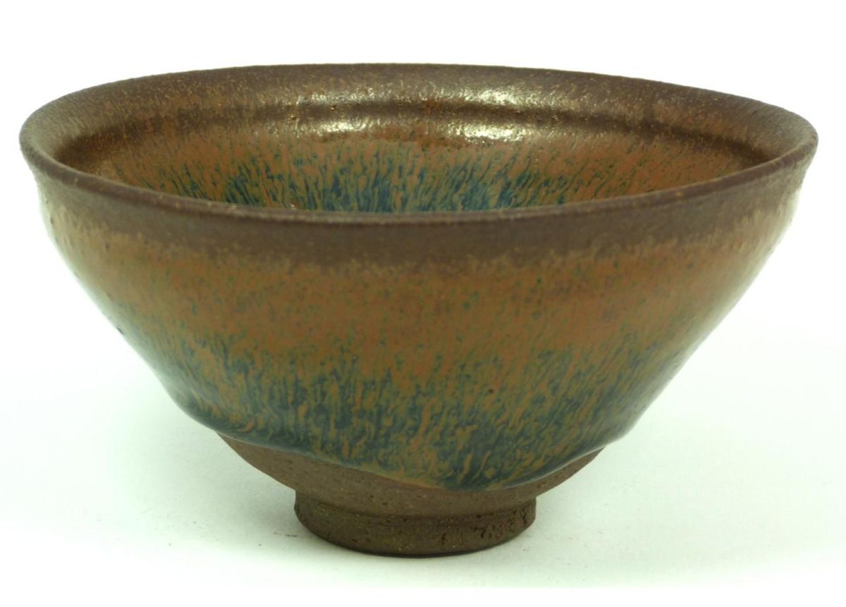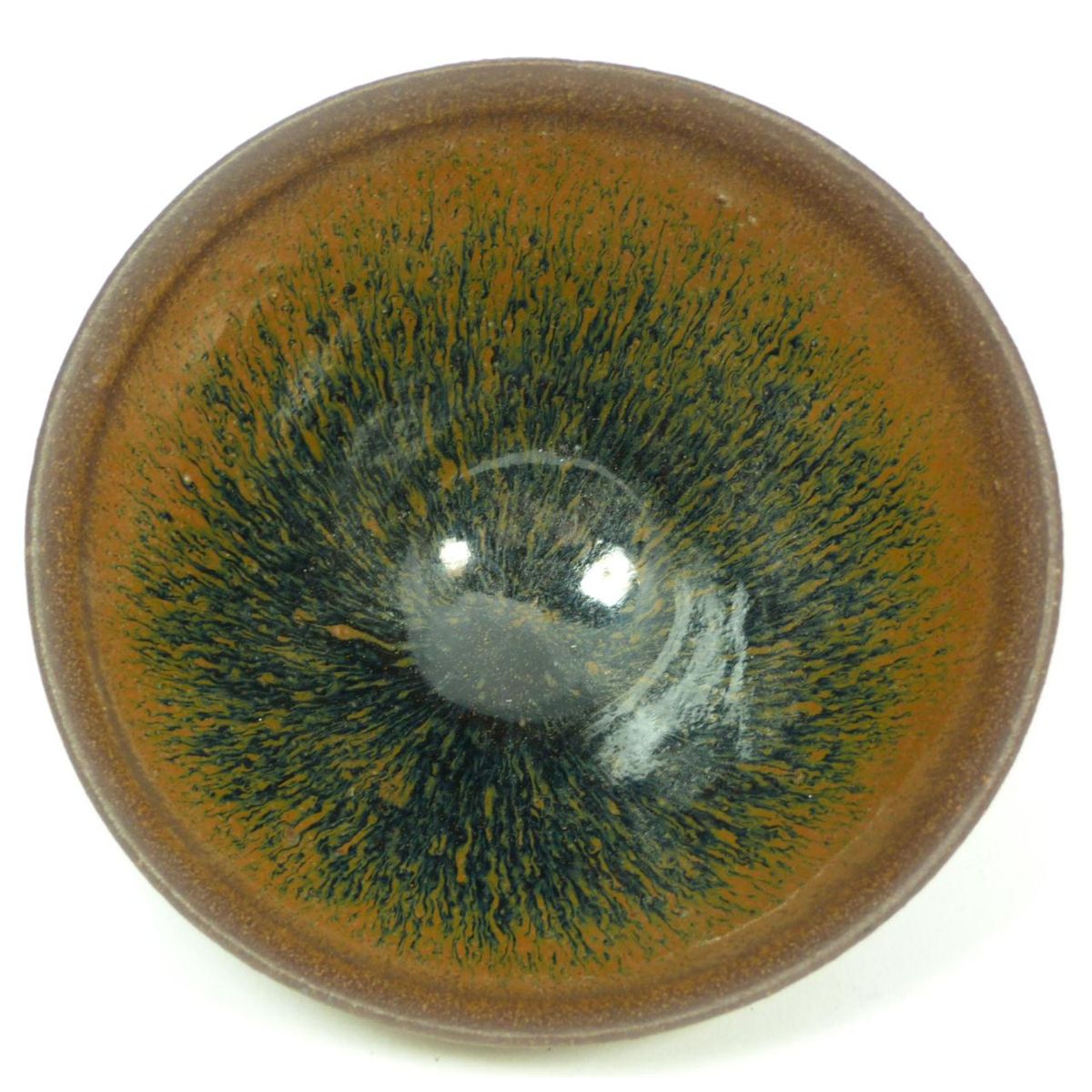 A Chinese Jianyao Temmoku brown and black glaze Song Dynasty tea bowl. Measures 2 5/8" height x 4 3/4" diameter (6.6cm x 12cm). Total weight of 238 grams.