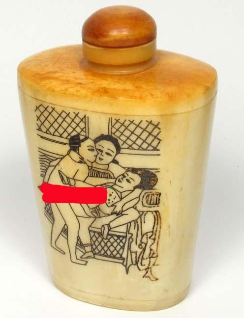 CHINESE KAMASUTRA BONE SNUFF BOTTLE - Approx. 3" tall