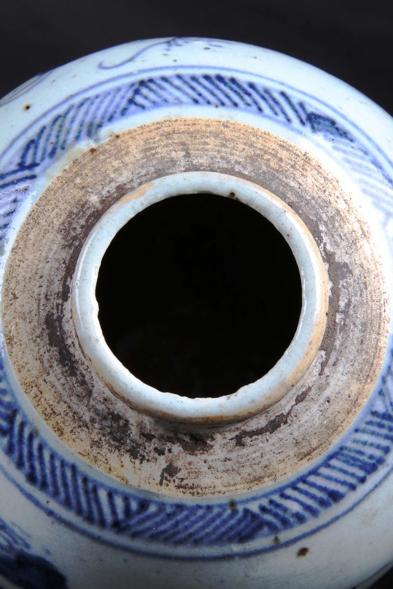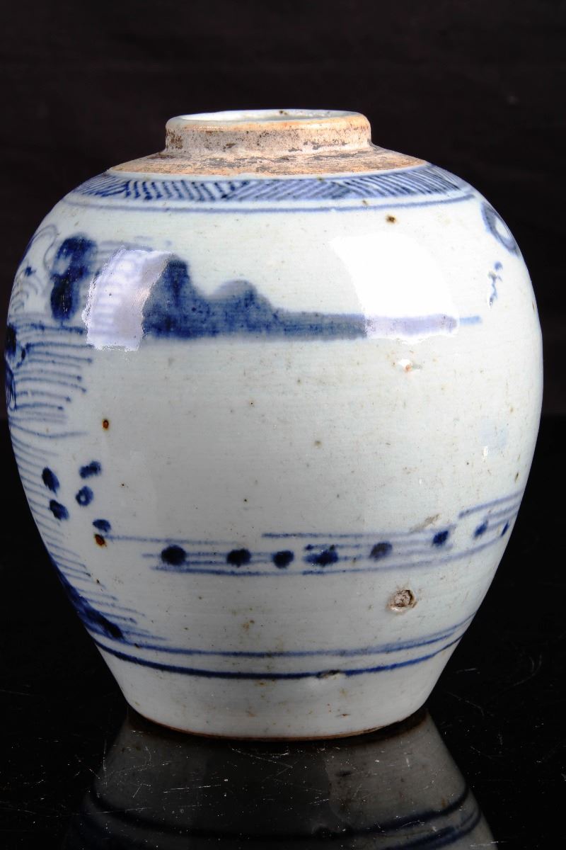 [CHINESE] LATE 19TH CENTURY BLUE AND WHITE PROCELAIN JAR PAINTING WITH LANDSCAPE L:6" W:2.9" H:1.9"19世纪末 青花田园罐一只